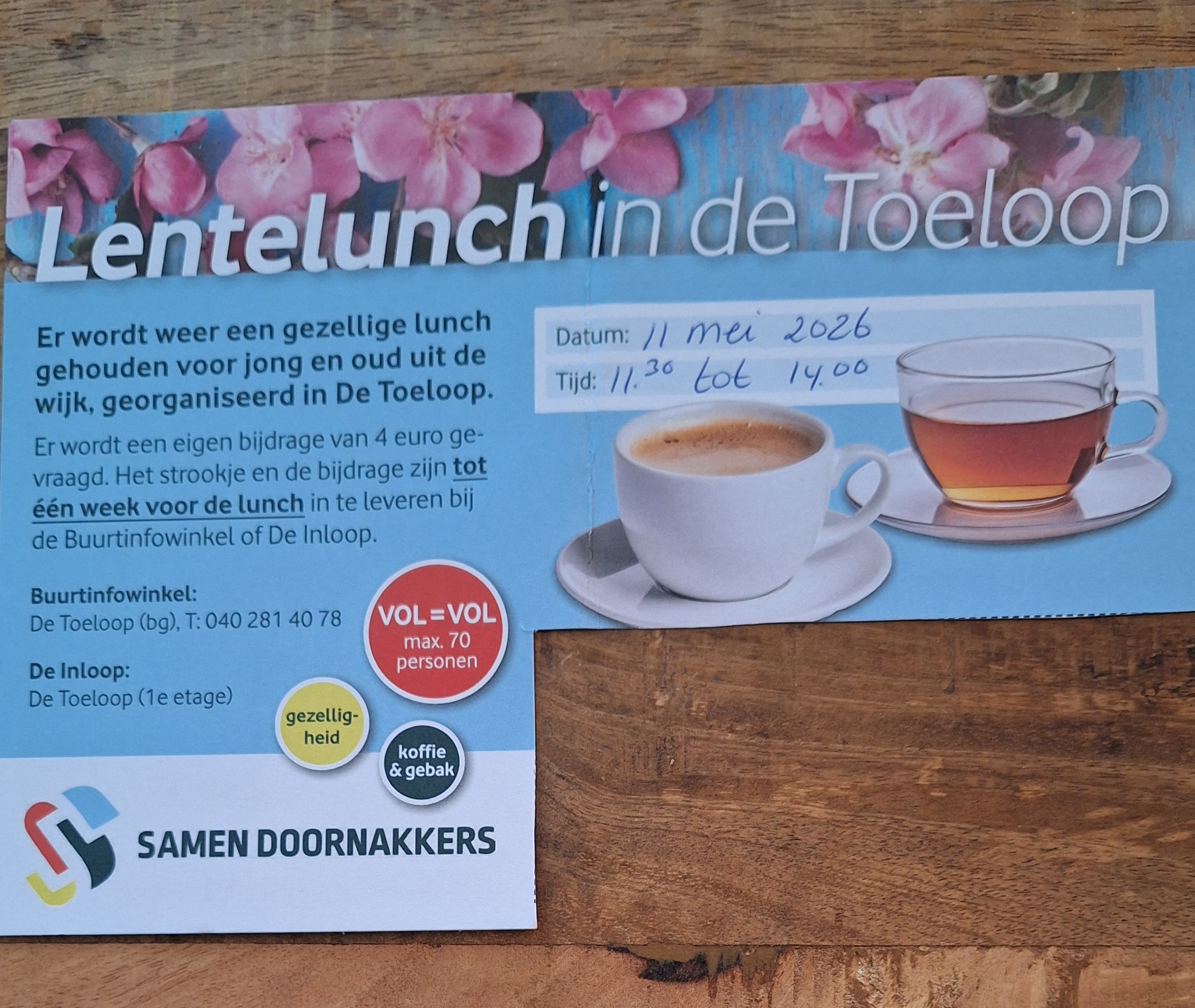 KOFFIE DRINKEN SAMEN MET BUURTBEWONERS BIJ DE TOELOOP!: